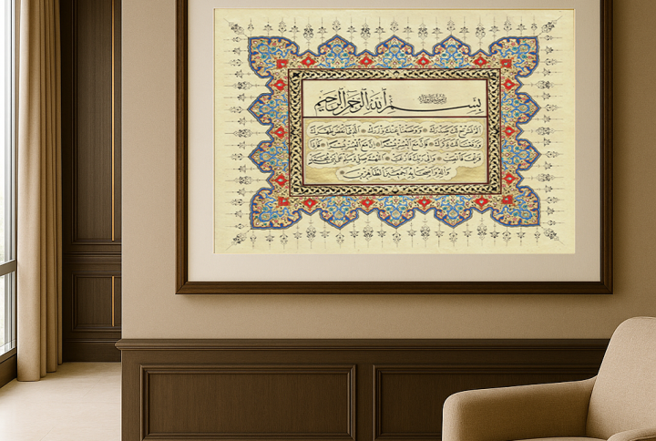 نُفذت يدويًا على قماش فاخر، لتجسد المعنى العميق للطمأنينة والسكينة. لوحة فنية تنشر الراحة والجمال في كل زاوية توضع فيها.