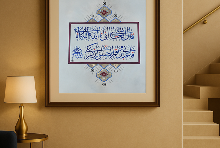 Executed on polished fine paper, the composition carries a sense of stillness and order — a powerful reminder that Allah is the best disposer of all affairs.