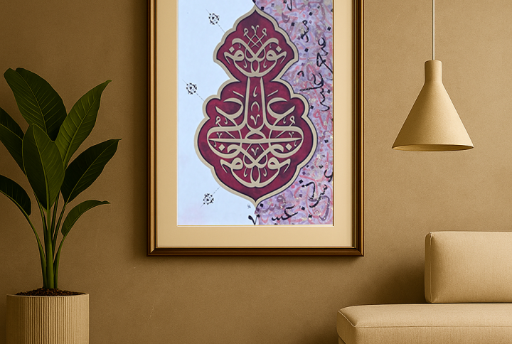 Handwritten on natural leather, this artwork reflects the weight of divine speech and the sacred command of worship. With its flowing calligraphy and timeless surface, the piece serves as a powerful visual and spiritual anchor.